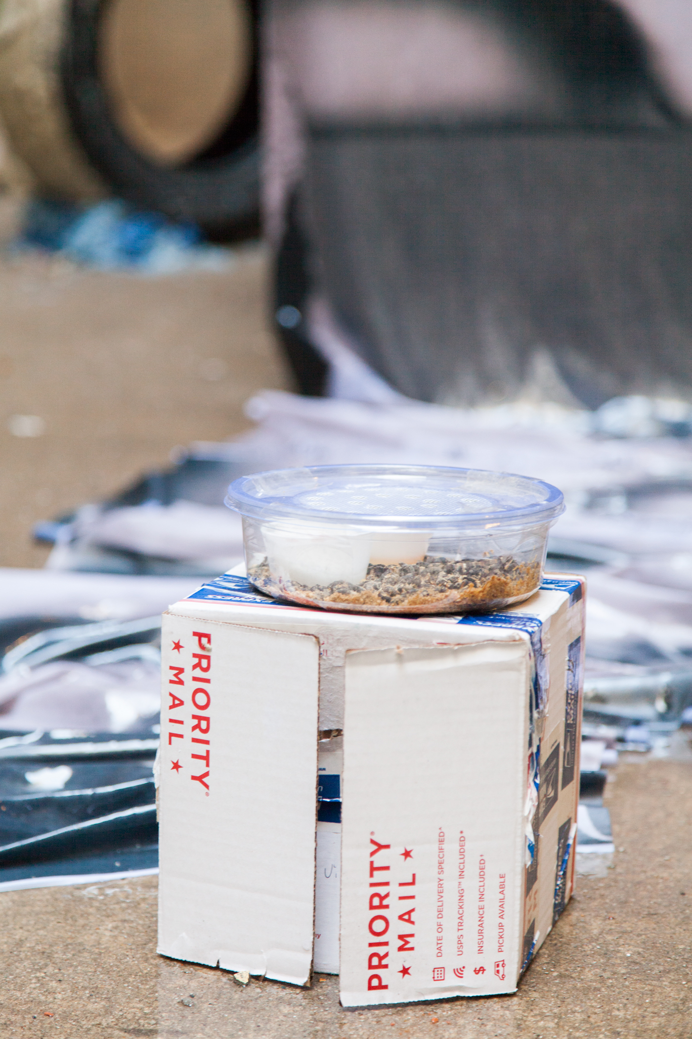 There were six long art students, thin like spaghetti, standing around the nude model [whiskers]. The model posed with her head thrust forward and her fingers locked together behind her back [nose, mouth]. Her stage was a little round platform with a blanket thrown over it [muzzle]. The art students looked up at her and one by one broke their vine charcoal into two pieces [pupils]. They rubbed the black sticks onto pads of newsprint until the shape of the powder that crumbled off resembled the shape of the model. Meanwhile, the teacher sat by the window and fiddled with a paint flecked oval boombox [head]. He carried it around the room like a thurifer, trailing plumes of static. He waved it about, and pushed its antennae this way and that [ears] until, finally, it shouted “Autozone!” , 2018