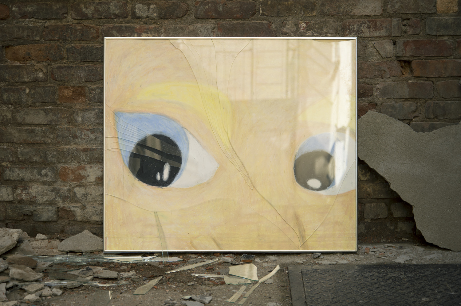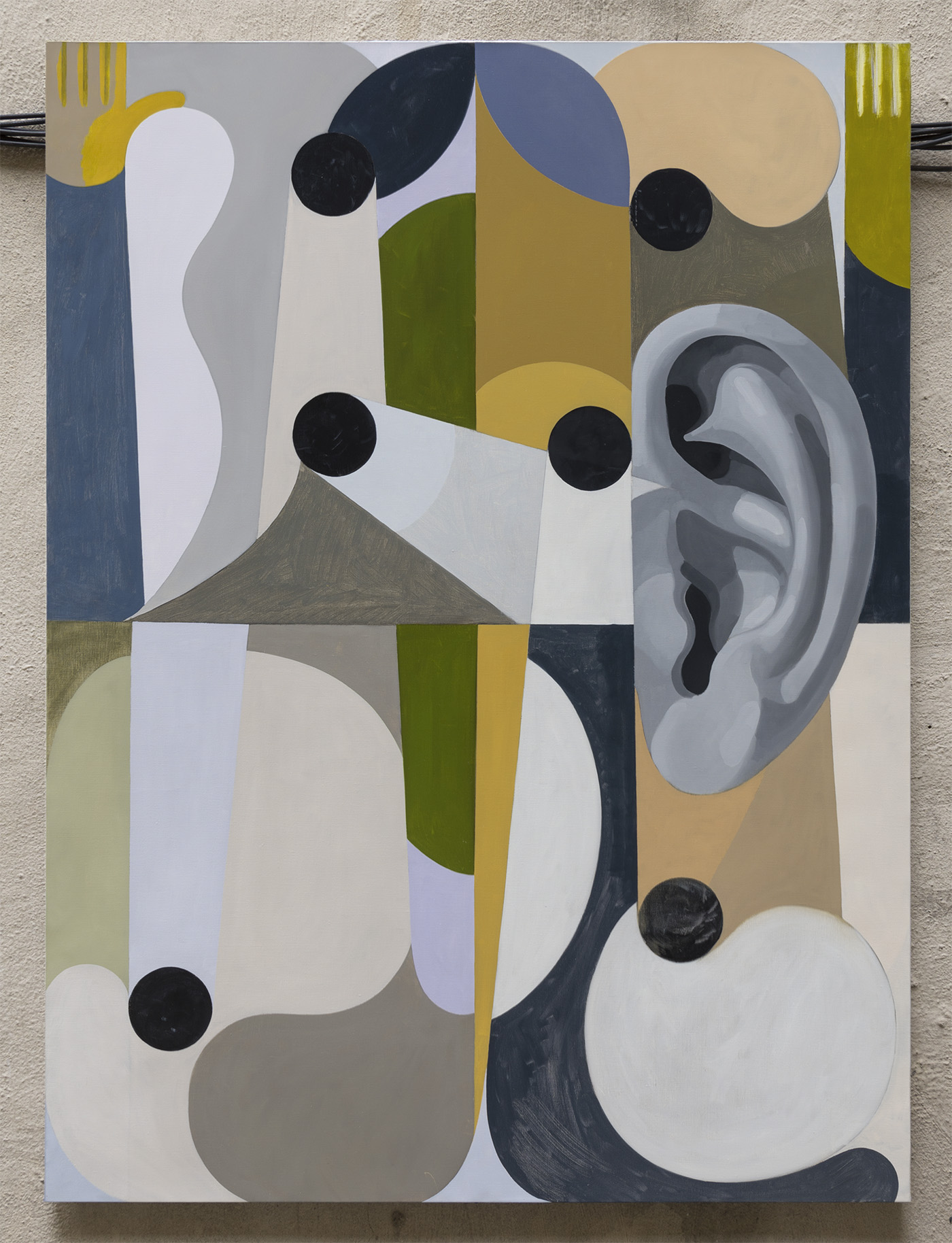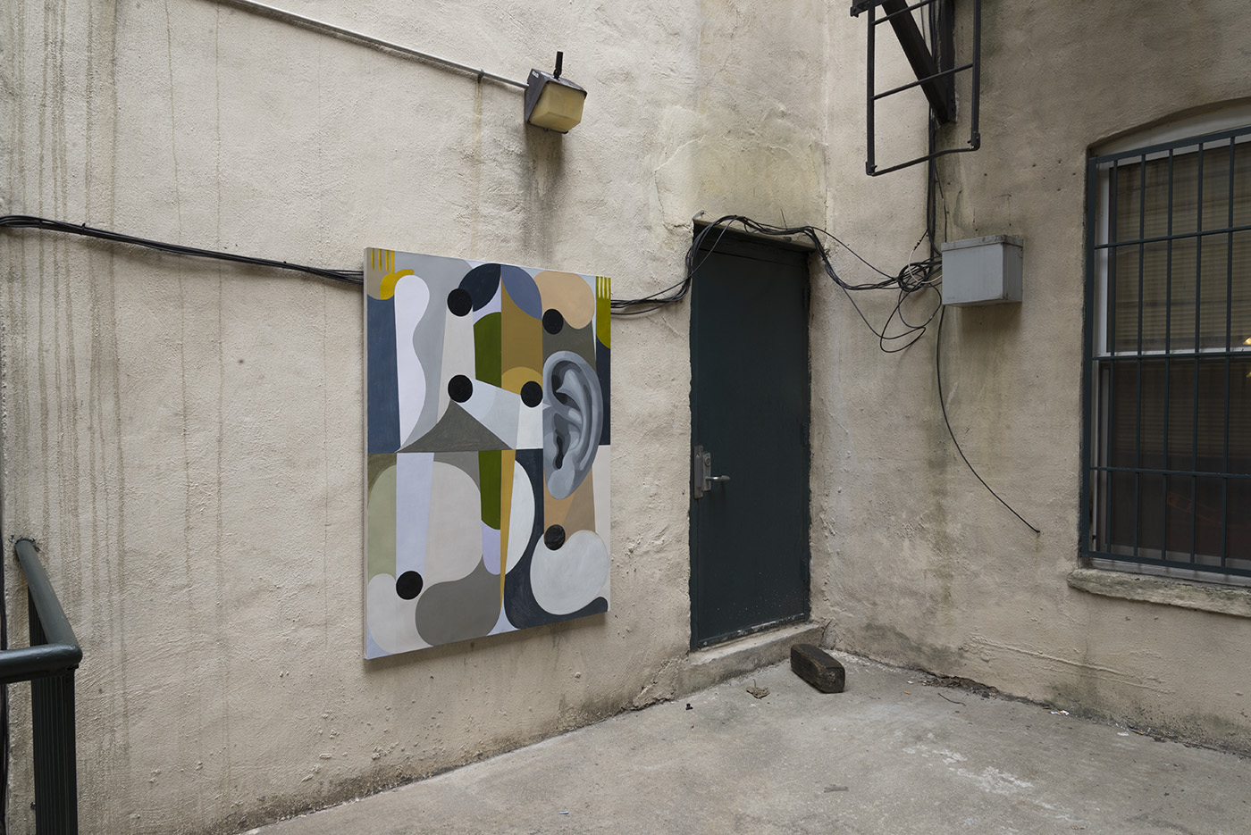 The job of us artists is to draw new lines. All the old lines are straight [whiskers], even the curvy ones and us artists gotta draw new ones. Us American artists, we thought the road was really something. For a hundred years we poked at its vanishing point [mouth] with our thoughts. Like sea lions we thought we could balance our dreams on its pointed tip [nose]. Like sea lions we were wrong! Us artists need to learn more from the Parisian Communards who barricaded the streets but pierced the houses [eyes, pupils] and flowed that-a-way. They “found flowers [muzzle] which are chairs” said Rimbaud confusingly. Oh artists! We are the Most Influential Artist’s of 2017 yet we must be influenced in turn. Let us remember to gaze upon that the tear shaped cloud of starlings [ear] gyrating over Central Park South and to wonder at their reflection in a glass facade [ear] as we turn to enter the Apple Store., 2018